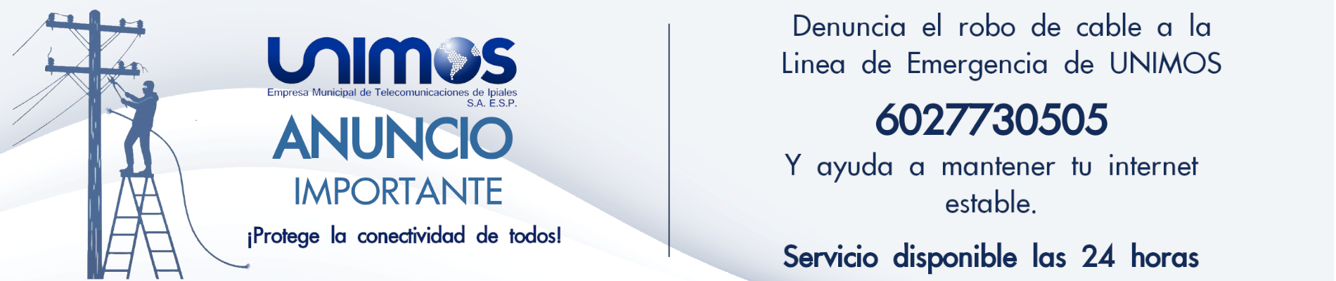 UNIMOS Empresa Municipal de Telecomunicaciones S.A. E.S.P., es una empresa que ofrece servicios de Tecnología de la Información y las Telecomunicaciones al municipio de Ipiales, con la continua mejora en calidad y en la prestación de sus servicios, formando un gran equipo de trabajo para lograr posicionamiento y diferenciación en el mercado de las TICs, dentro de la región y buscando reconocimiento a nivel nacional.